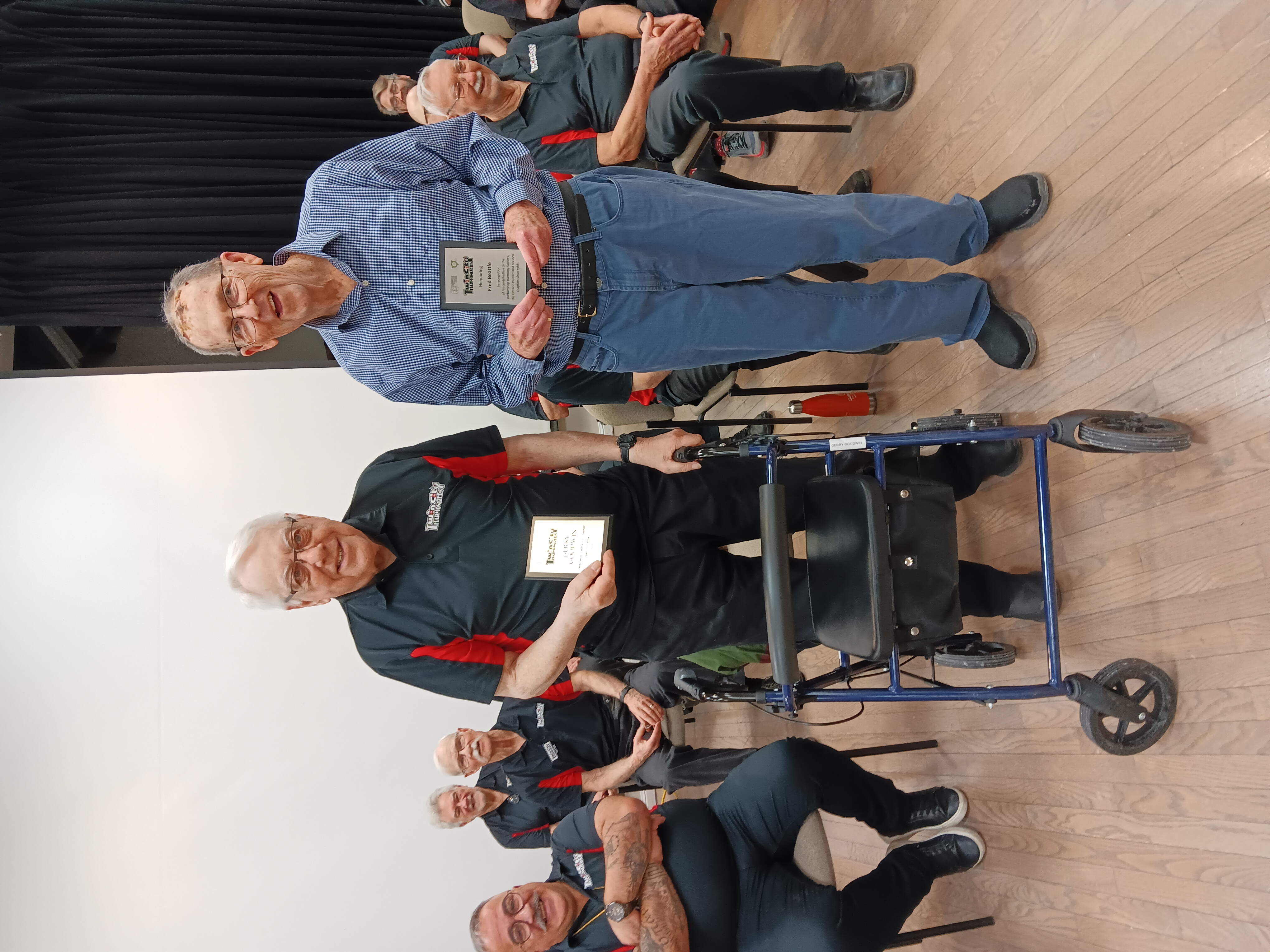 We had a great time at this years fall convention on October 18. Thanks to the great leadership of our director Terry Hallman, coaching by Robert Ross and efforts of everyone in the chorus we were awarded "Ontario District Most-Improved Chorus Award" and "Ontario District Plateau 2 Chorus Champion".